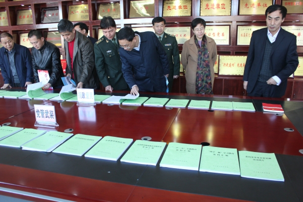 山东省双拥考评组检查县人武部双拥档案资料