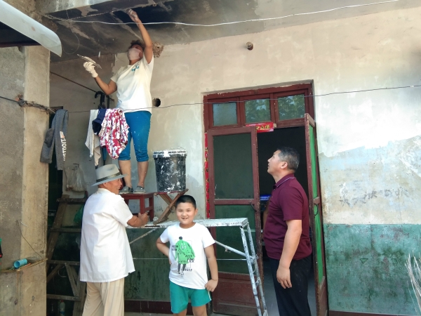 结帮扶对子 办拥军实事 解功臣难题 ——汶上县爱国拥军协会真情帮扶特困残疾军人 帮扶解难题,情暖英雄心。2018年6月28日,汶上县爱国拥军协会带着施工人员来到特困残疾军人王立业家中,对他家的房屋进行室内外粉刷,房屋旧貌换了新颜,赢得了家人和村民的纷纷点赞! 王立业今年75岁,是一名退伍残疾军人,家住汶上县中都街道阙庄村,1969年退伍回乡以来,怀着对党和部队的深厚感情,近50年来收藏了30余份伟人像及历年来的拥军优属慰问信,其中一幅是他在部队期间用绣花针亲手绣制的毛主席画像。王立业退伍时,唯一的要求就是非常喜欢伟人像,部队同意了他的要求,这样王立业非常欣喜地把印有马克思、恩格斯、列宁、斯大林、毛泽东等伟人头像的伟人像带回了家。王立业退伍后,细心的王立业把民政部门每年发给他的拥军优属慰问信,一张一张地贴到了墙上,成为了令人眼前一亮的独特风景。 通过了解,1967年6月王立业在湖北汉口电讯局因制止文革中武斗事件头部受伤,荣立三等功,但也因而落下残疾。王立业的家庭有6口人,其中儿子、儿媳没有了劳动能力,老母亲95岁,年岁已高,体弱多病,王立业因为脑部致残也基本失去劳动能力,这样家庭重担就全落在了妻子身上,家庭生活非常困难。汶上县爱国拥军协会党支部书记赵中全考虑到王立业收藏的伟人像和拥军优属慰问信是一笔宝贵的精神财富,有必要保护和利用起来,发挥好对群众的教育作用,同时由于王立业存在生活困难,决定对王立业家的房屋进行粉刷,改善居住环境,并对所有的伟人像和慰问信装上镜框,重新进行布展陈列,教育群众。 “我岁数这么大了,还没见过那么光滑的墙壁,真不知道怎么谢谢你们才好啊!”,王立业95岁的老母亲对正在粉刷墙壁的施工人员陈桂苓非常满意,逢人便夸。陈桂苓听到爱国拥军协会帮扶军人家属、残疾军人的事迹后,深受感动,免费提供了走廊顶部、侧面的墙壁粉刷服务。 雷锋家政服务队队长张华,也是汶上县爱国拥军协会的副会长,即使在母亲因病住院的的情况下,挤出照顾老人的时间感到了王立业家中,维修了电路,安装了2个灯棍,修理、调试好了电视机,张华忙完后没来得及喝一口水又赶忙返回了医院。 王立业为了表达感激之情,购买了几个大西瓜和40瓶优质矿泉水,为冒着炎热正在工作的人员送去了甘甜和清凉,此情此刻每个人都被温暖的力量鼓舞着,忘记了炎热和劳累。 汶上县爱国拥军协会通过建立多个拥军优属学雷锋服务小组,形成了入户服务的常态化机制,在本次帮扶工作中协会投入10000元,粉刷墙壁300平方,制作、安装镜框30个,安装电棍2根,维修电视1台,检修电路3处,确保用上安全电。 今后,汶上县爱国拥军协会将把王立业家庭改造成为爱国拥军教育基地,定期组织广大会员和人民群众前来接受爱国拥军教育,激励全社会的爱国拥军的热情。