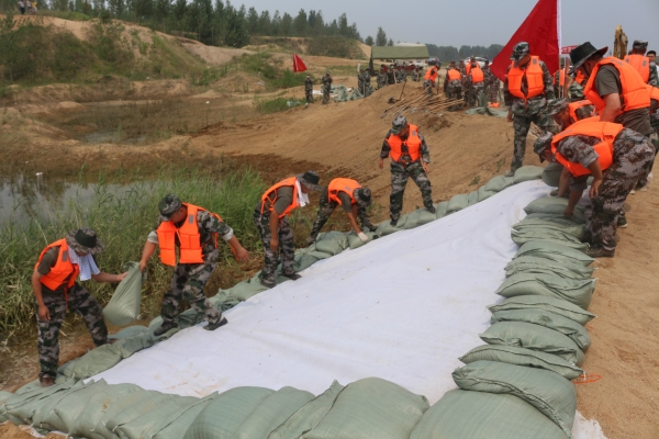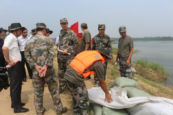 7月5日,我县举行2018年防汛抗旱指挥部防汛培训暨抢险演练,济宁军分区副司令员刘建忠,县委书记李志红到场观摩指导。