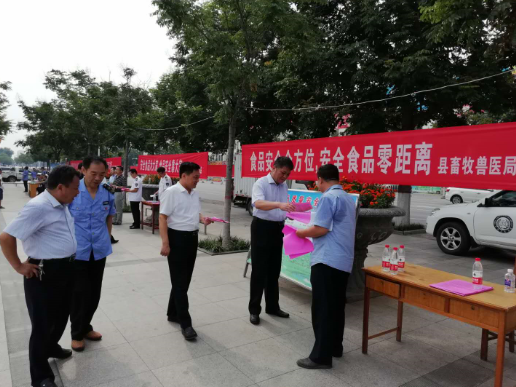 为进一步普及畜产品质量安全知识,积极动员全县上下关心支持食品安全工作,7月17日,县畜牧兽医局参加以“尚德守法 食品安全让生活更美好”为主题的全县2018年食品安全宣传周活动。